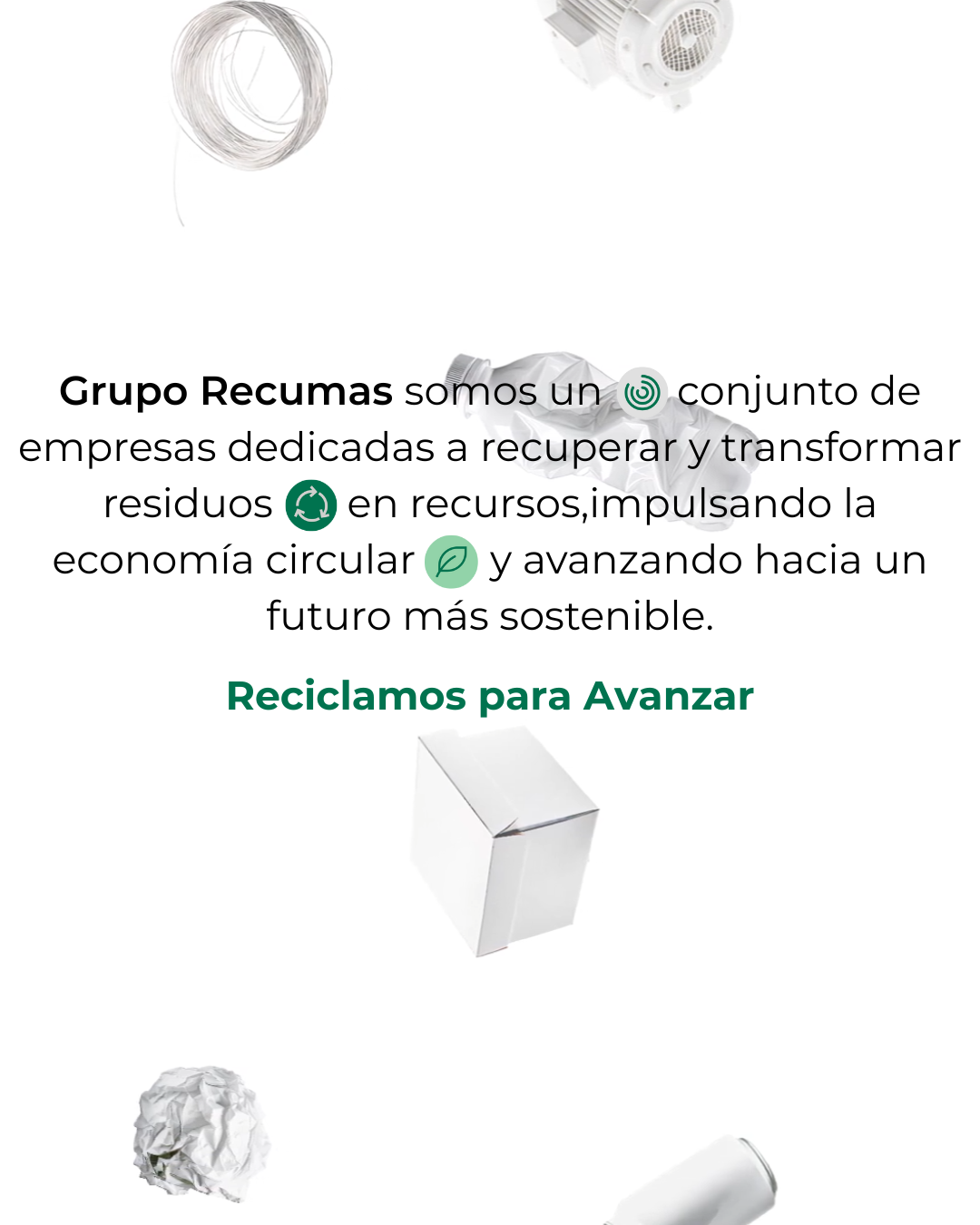 En el Grupo Recumas creemos que la sostenibilidad es más que una necesidad, es una responsabilidad que asumimos cada día para contribuir a un mundo más limpio y responsable.